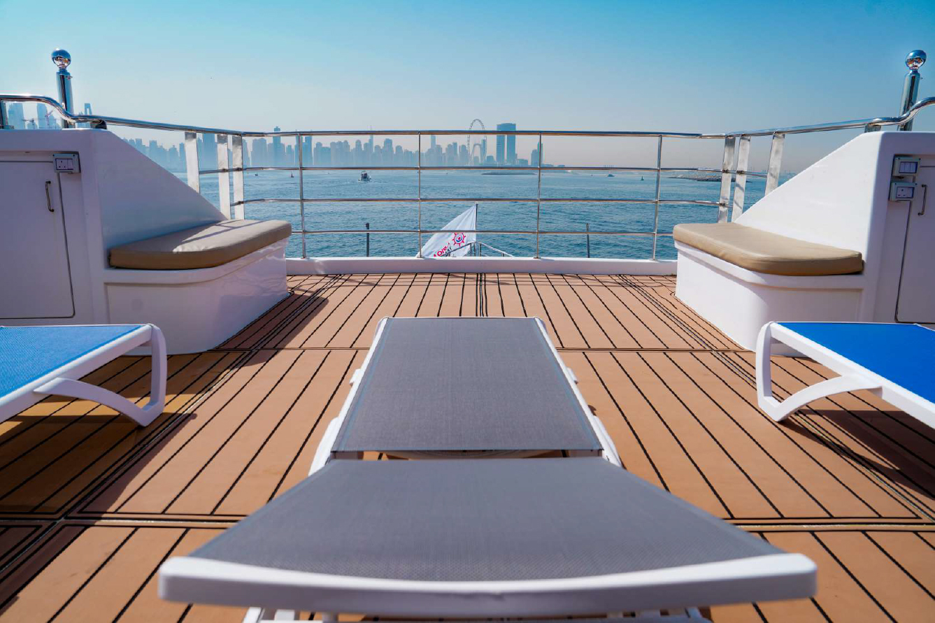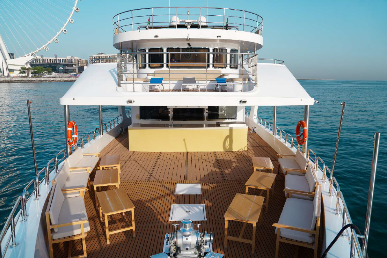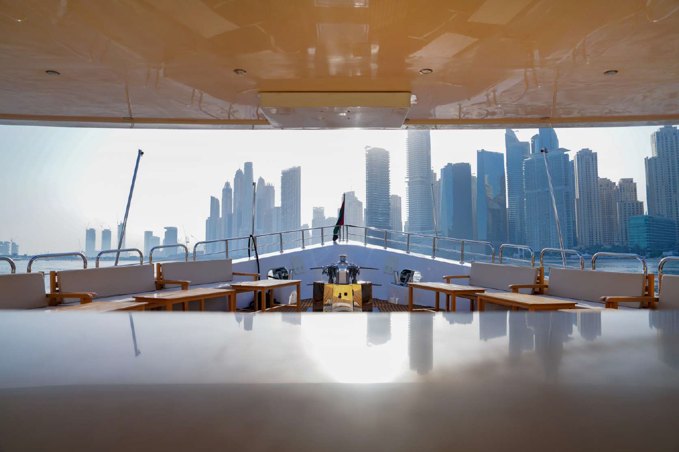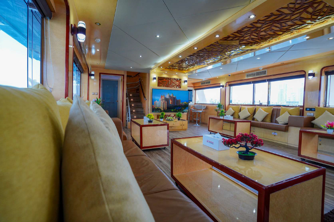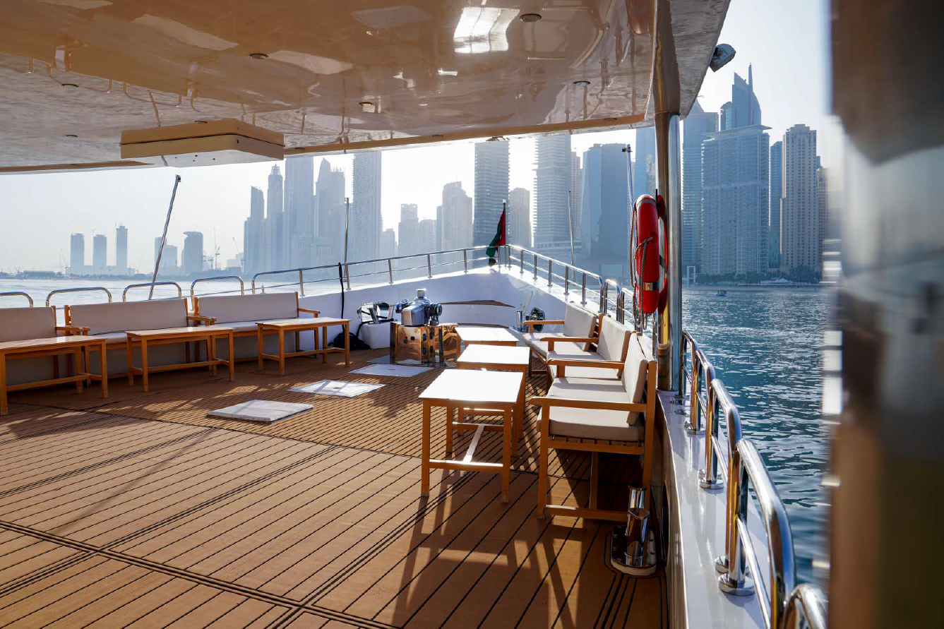 Majesty is a 125-foot yacht created for guests who value closeness, atmosphere, and thoughtful detail. Designed for private experiences of up to 100 guests, she is especially well suited for romantic dinners,yacht proposals, birthdays, and refined small-group gatherings in Dubai. This is not a yacht for crowds or noise. Majesty is about connection, calm luxury, and moments that feel personal — whether shared between two people or a close circle.