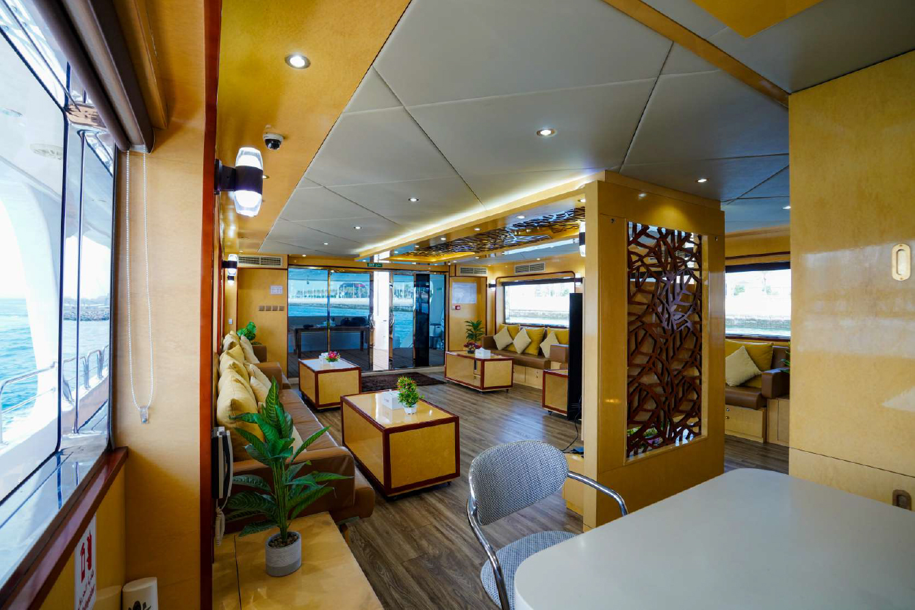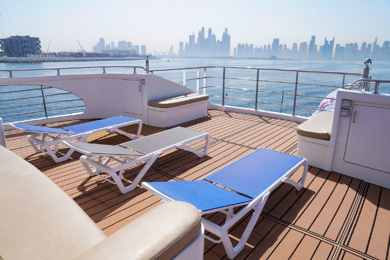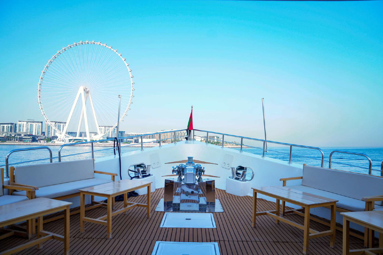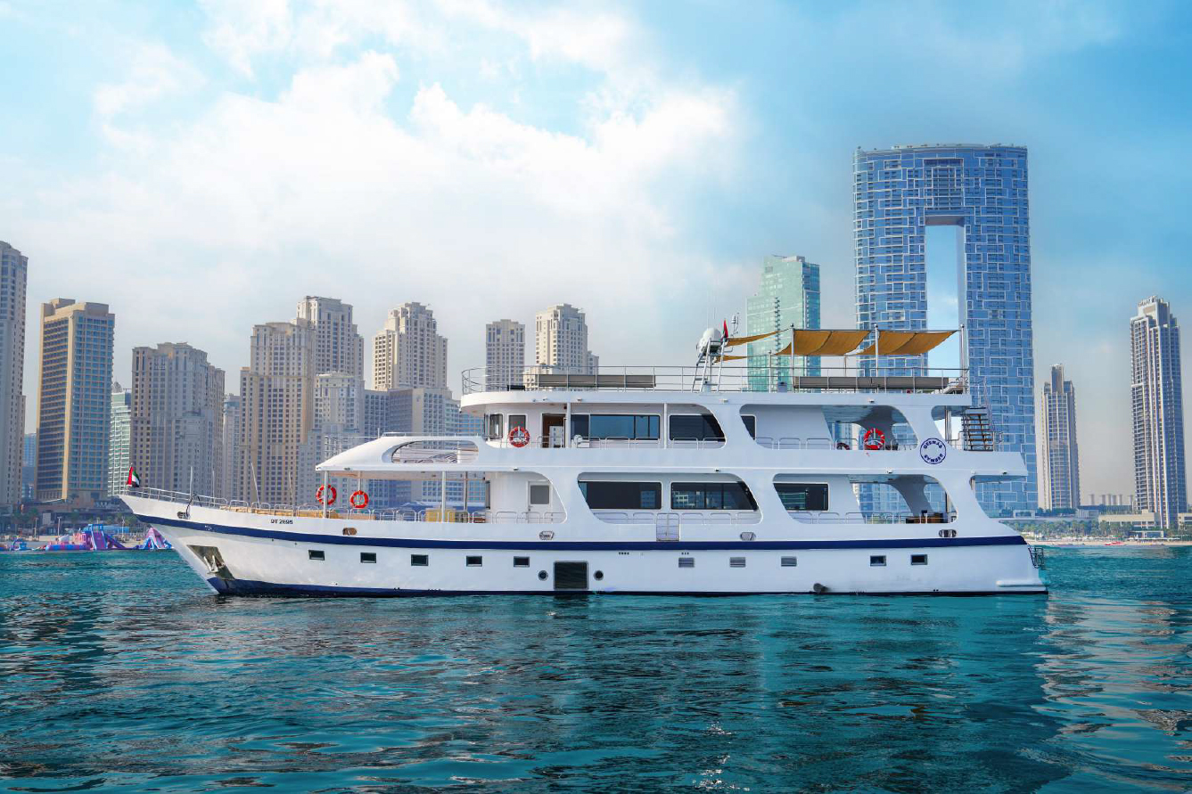 Majesty is a 125-foot yacht created for guests who value closeness, atmosphere, and thoughtful detail. Designed for private experiences of up to 100 guests, she is especially well suited for romantic dinners,yacht proposals, birthdays, and refined small-group gatherings in Dubai. This is not a yacht for crowds or noise. Majesty is about connection, calm luxury, and moments that feel personal — whether shared between two people or a close circle.