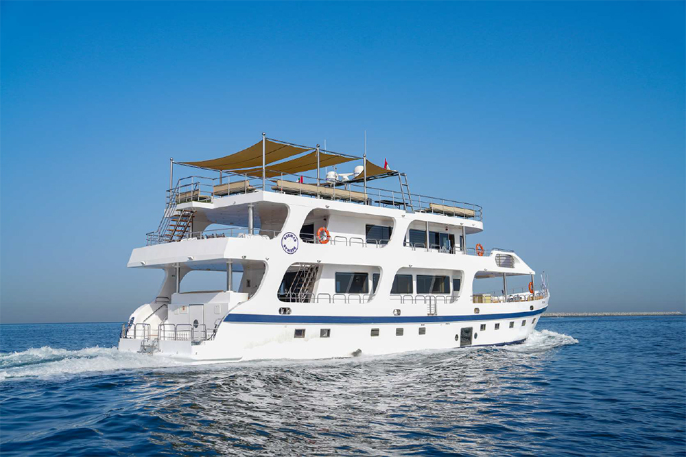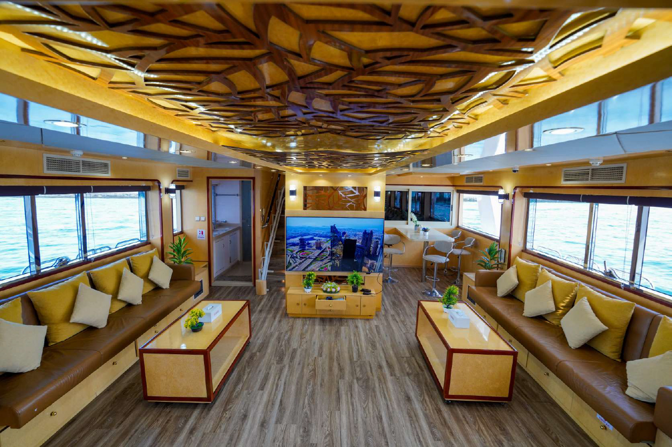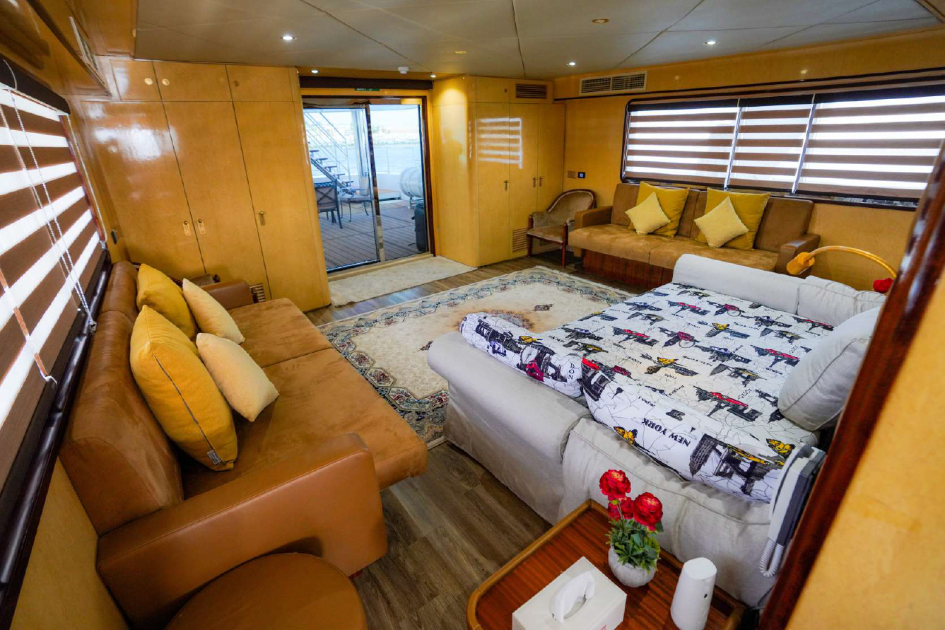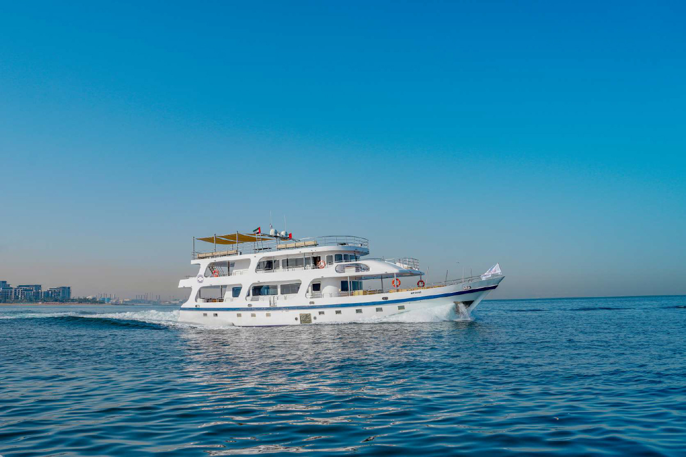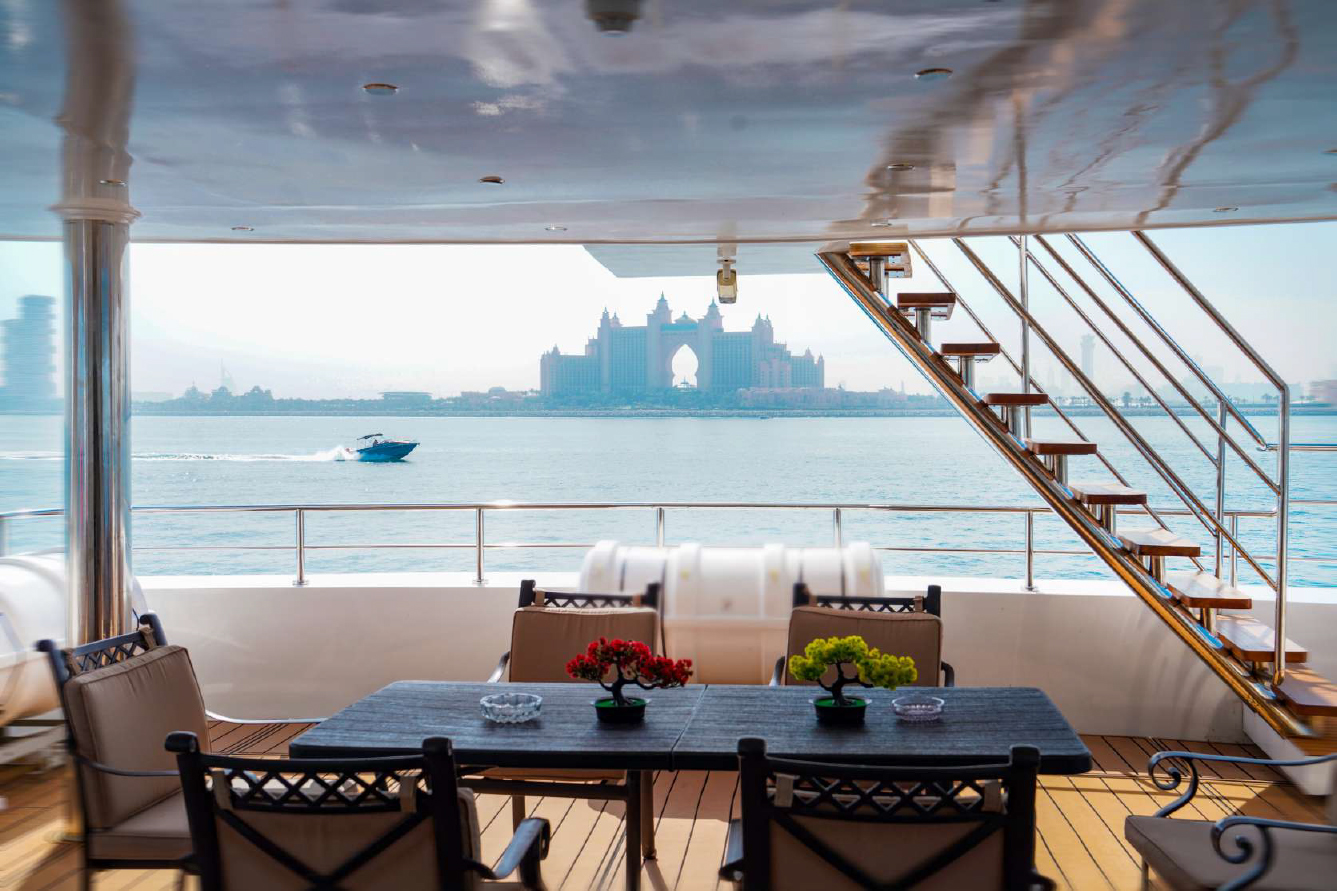 Majesty is a 125-foot yacht created for guests who value closeness, atmosphere, and thoughtful detail. Designed for private experiences of up to 100 guests, she is especially well suited for romantic dinners,yacht proposals, birthdays, and refined small-group gatherings in Dubai. This is not a yacht for crowds or noise. Majesty is about connection, calm luxury, and moments that feel personal — whether shared between two people or a close circle.