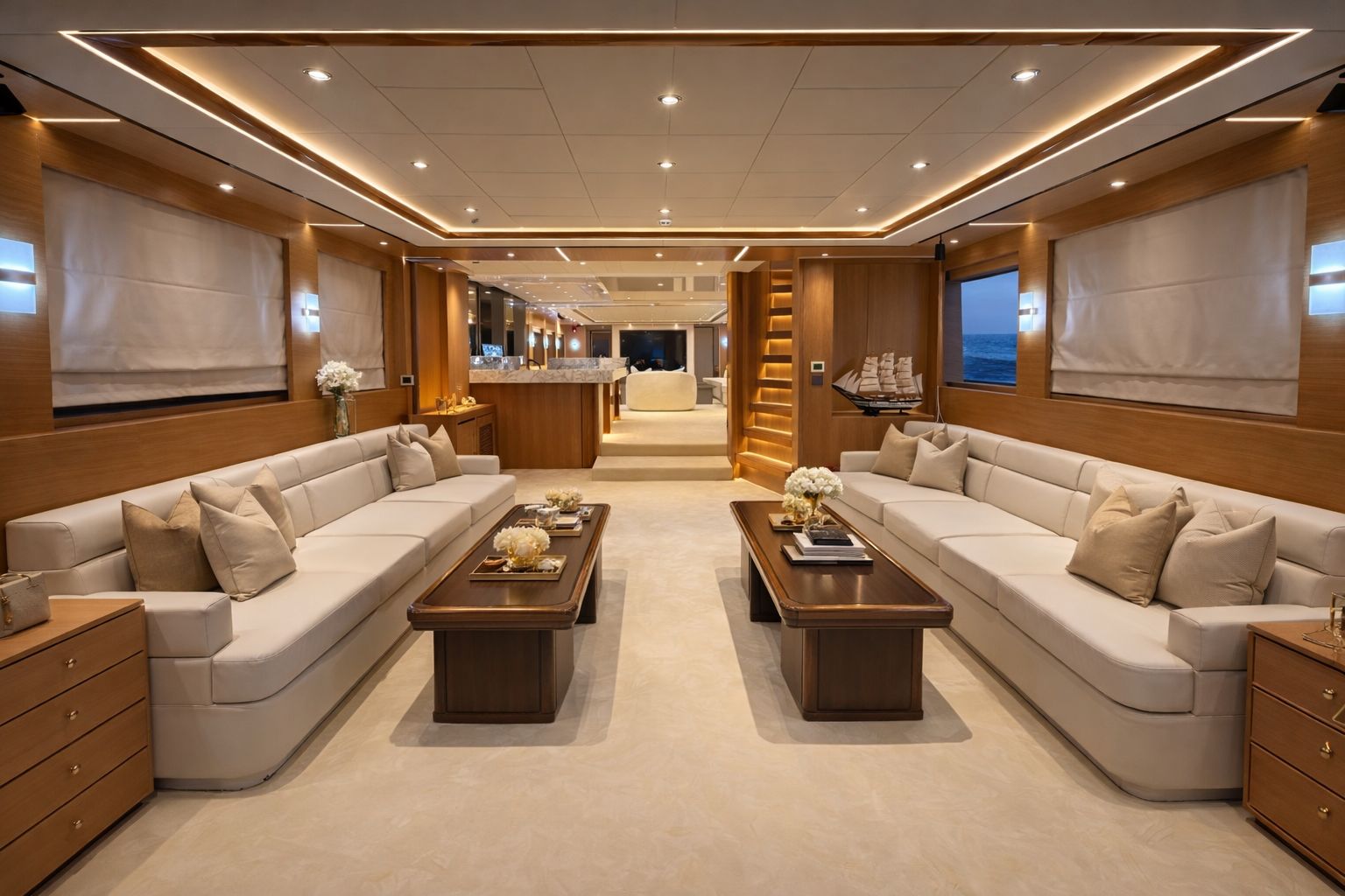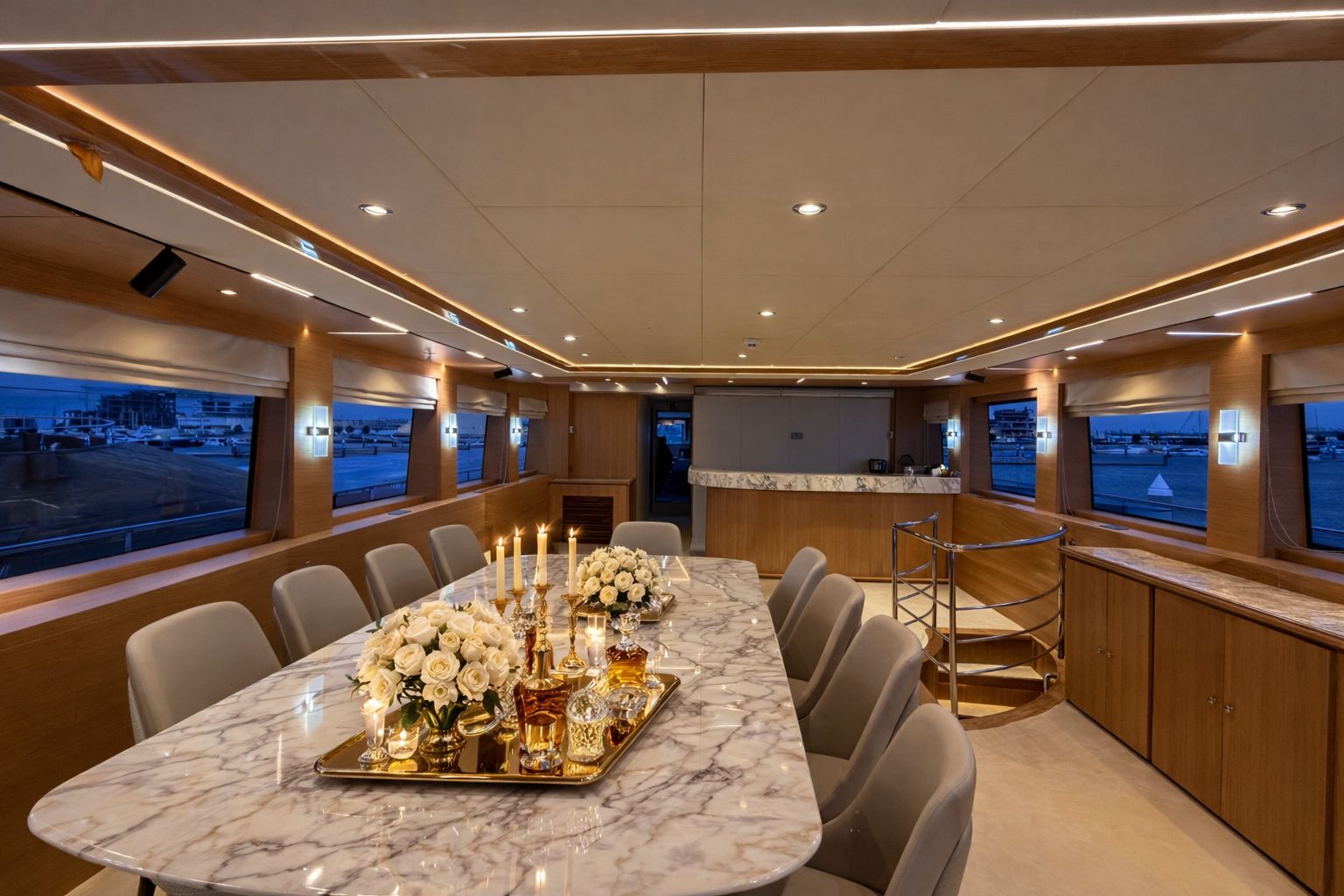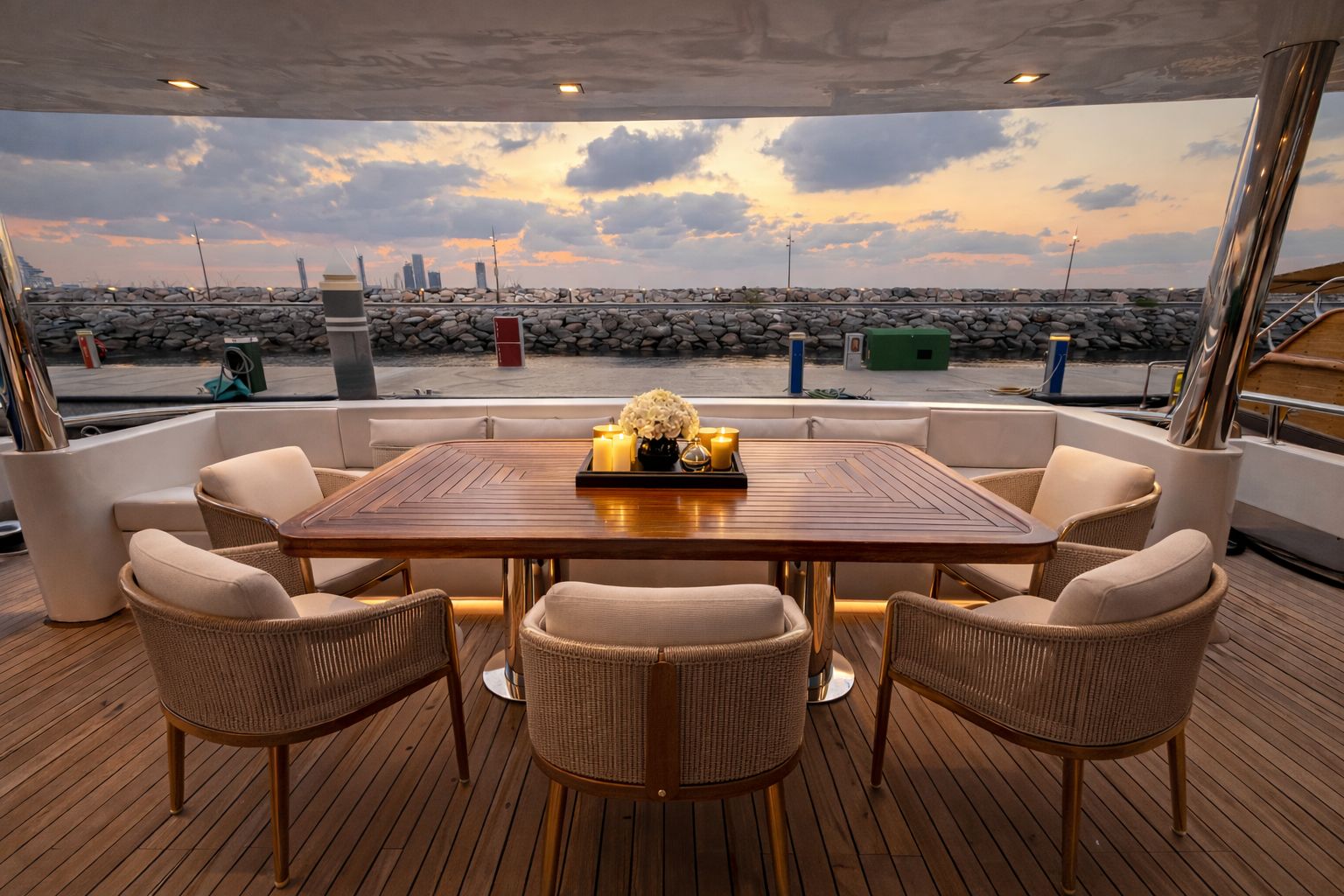 Garmin is a 200-foot yacht created for guests who value closeness, atmosphere, and thoughtful detail. Designed for private experiences of up to 120 guests, she is especially well suited for romantic dinners,yacht proposals, birthdays, and refined small-group gatherings in Dubai. This is not a yacht for crowds or noise. Majesty is about connection, calm luxury, and moments that feel personal — whether shared between two people or a close circle.
